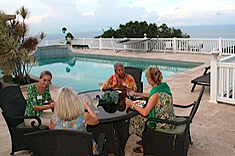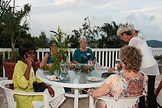 | First of all, we would like to thank Billie Hodges for opening her wonderful home to all of us. What a gorgeous setting with the sun going down on one side and the moon coming up over the BVI. Absolutely stunning! | |||||||||||||||||||||||||||||||||